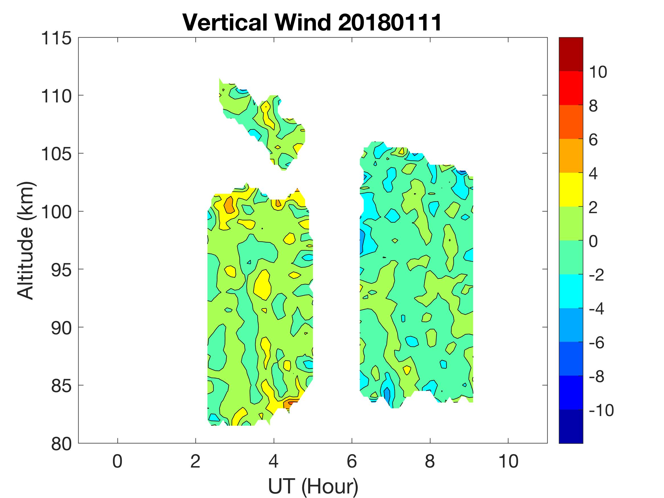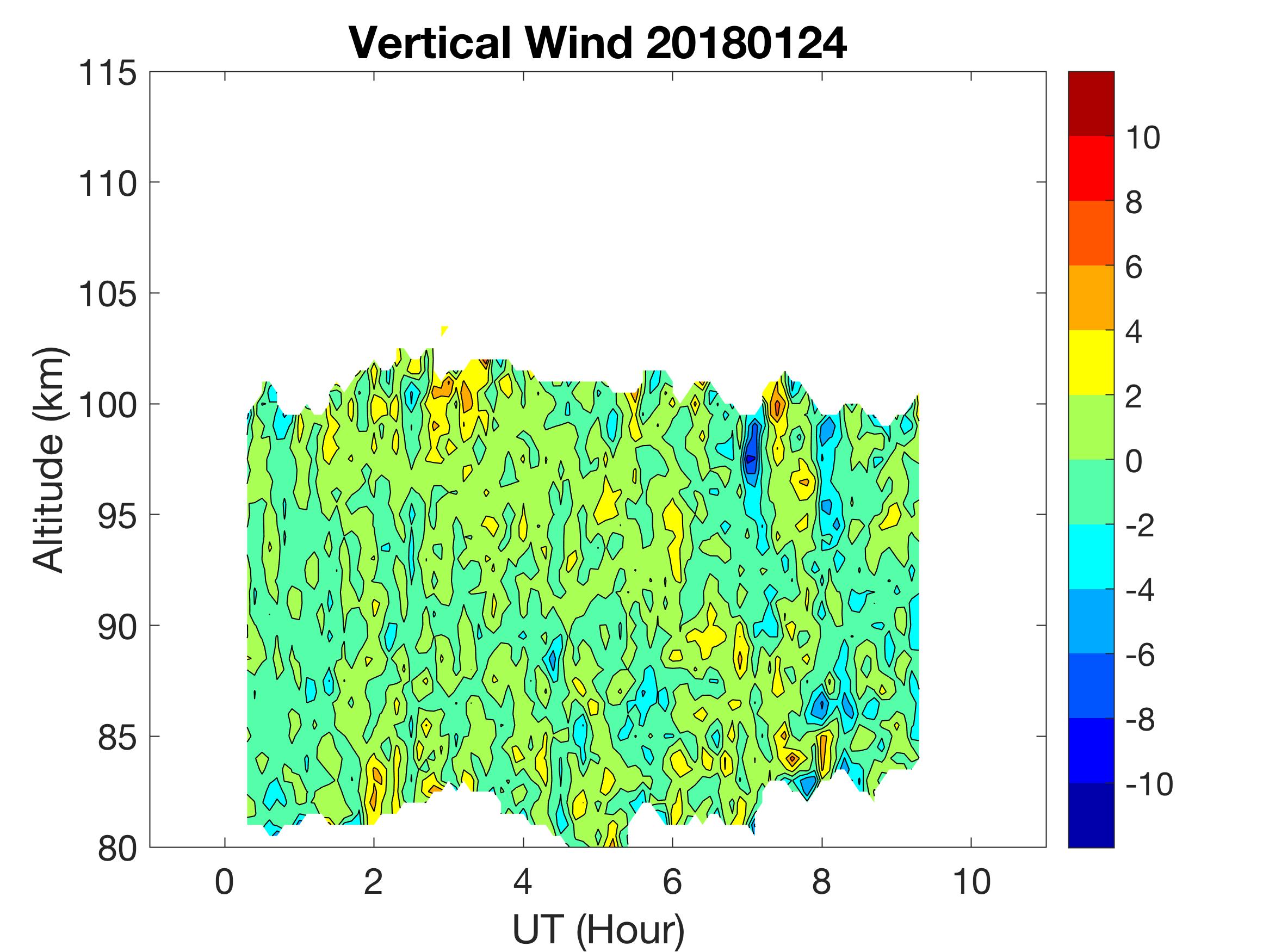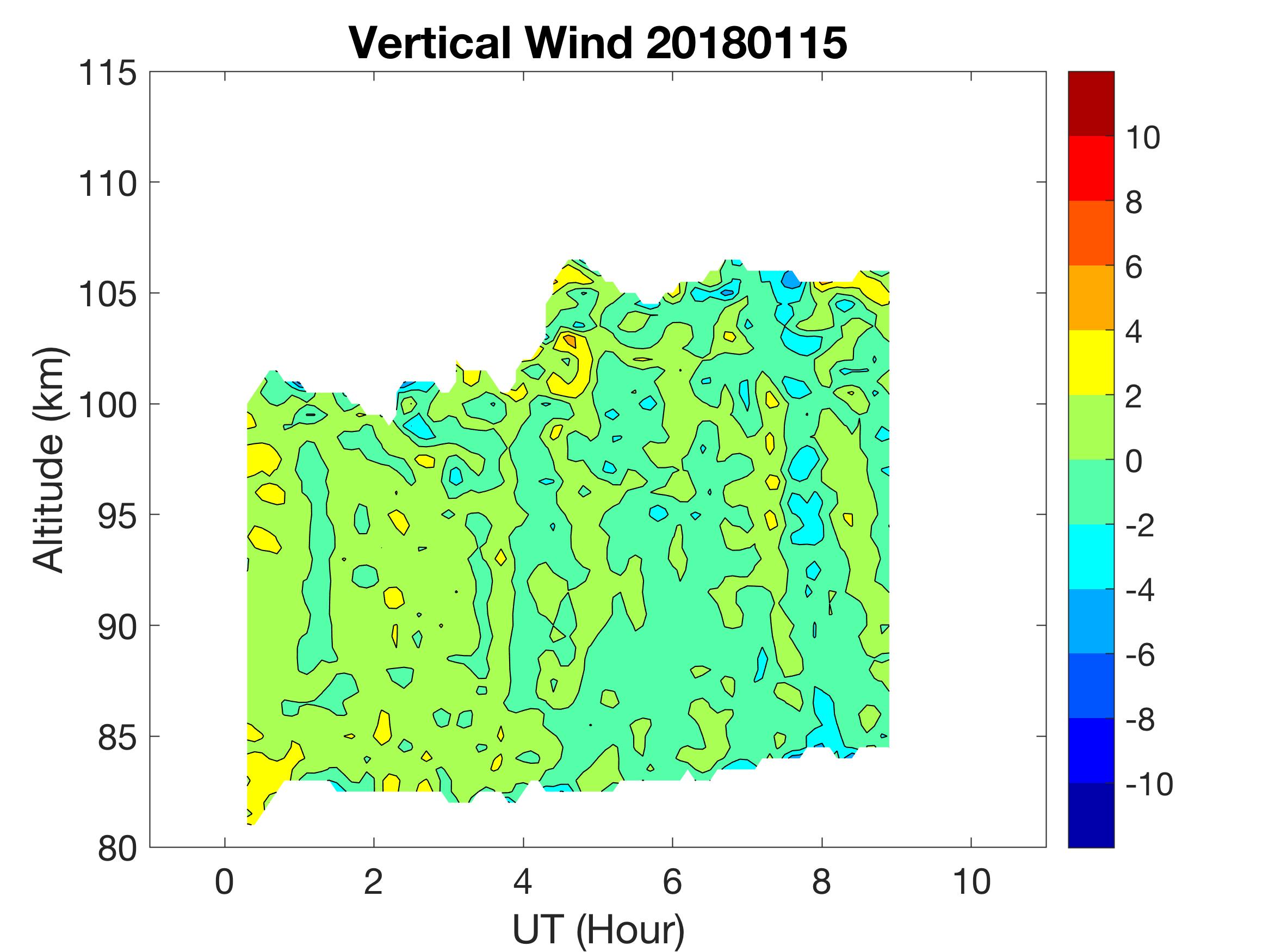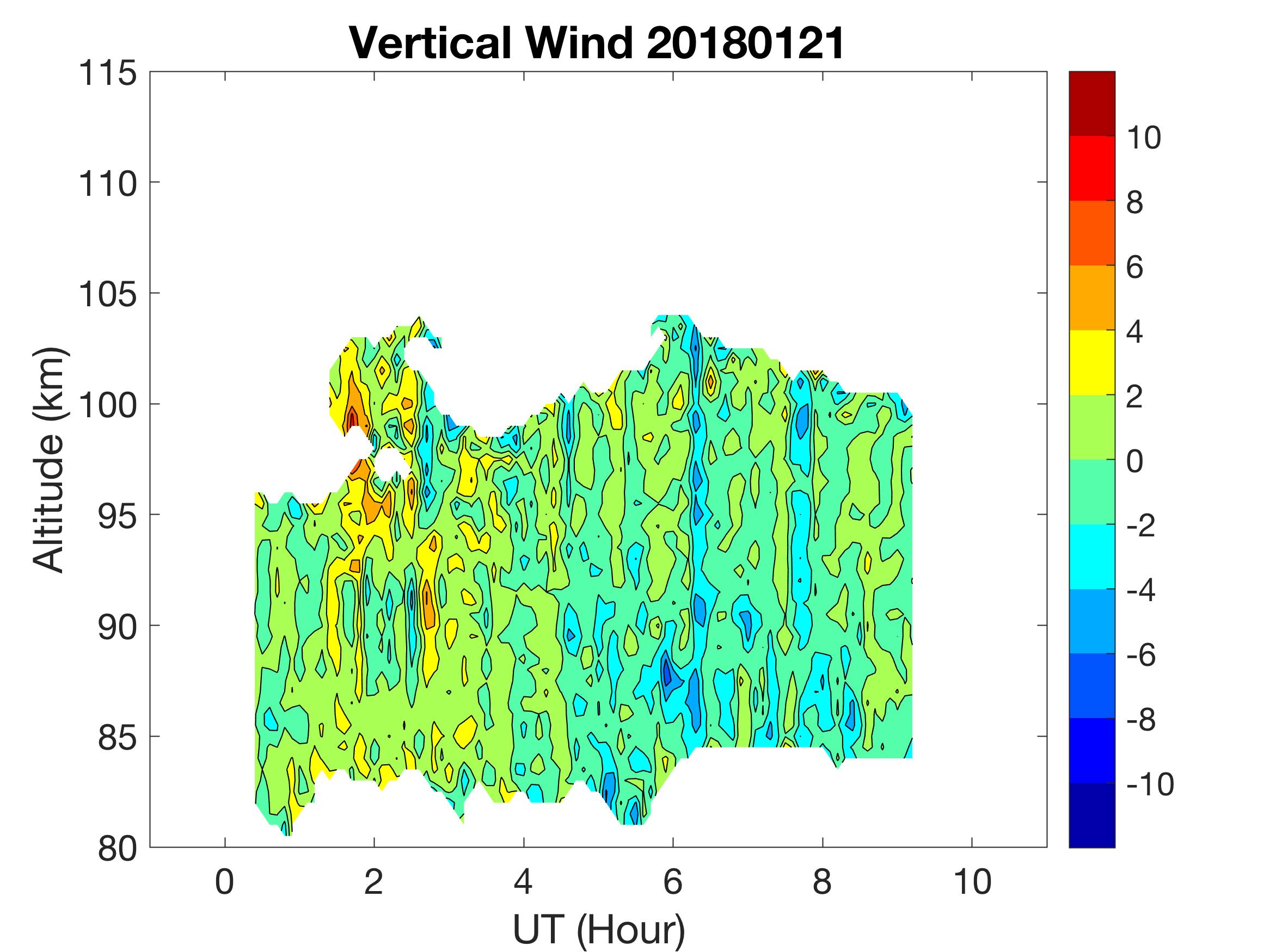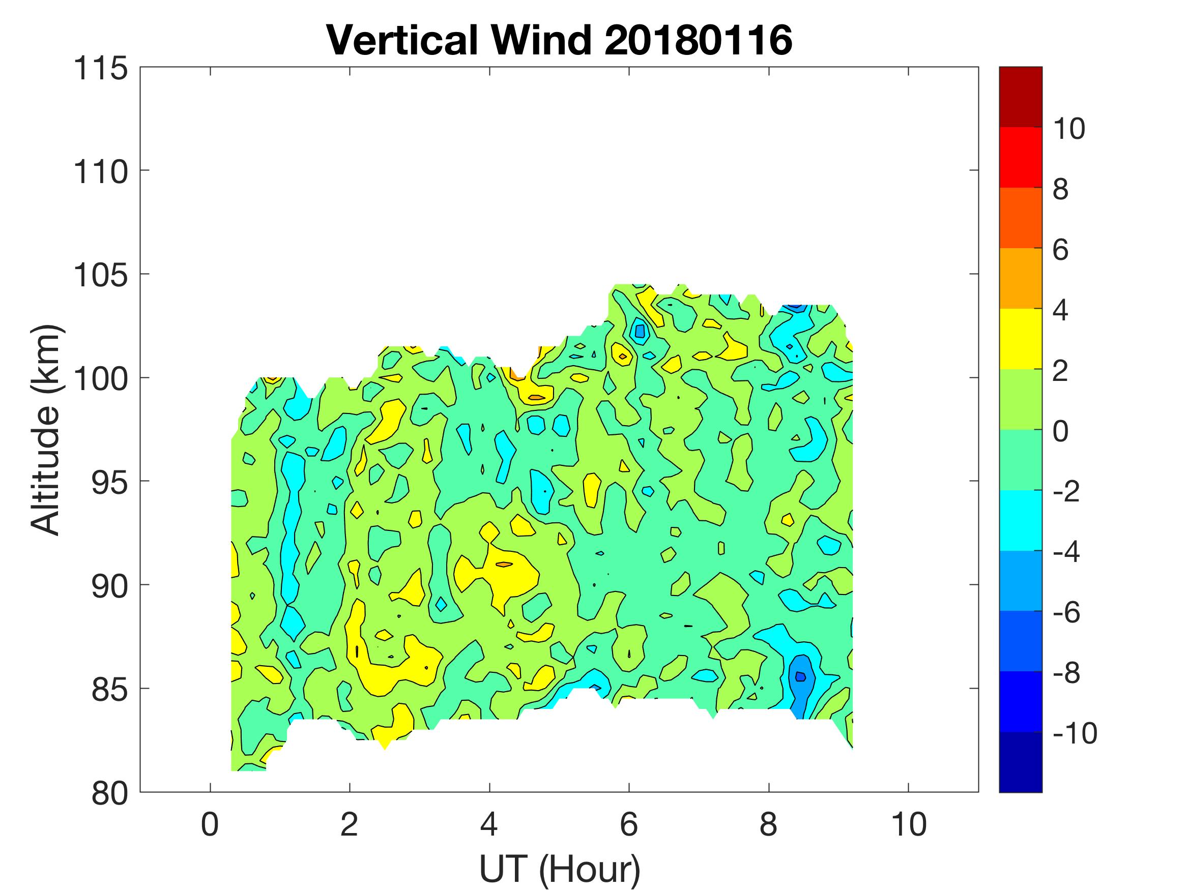 The lidar was operated in zenith mode on all nights. The integration time for processed data is 90 s. The smoothing window is 30 min and 1 km full width due to lower signals up to Jan 18. Starting on Jan 19, the temporal smoothing window is reduced to 15 min due to better signals. No horizontal wind was measured due to beam steering problem. Na mixing ratio contours are added.