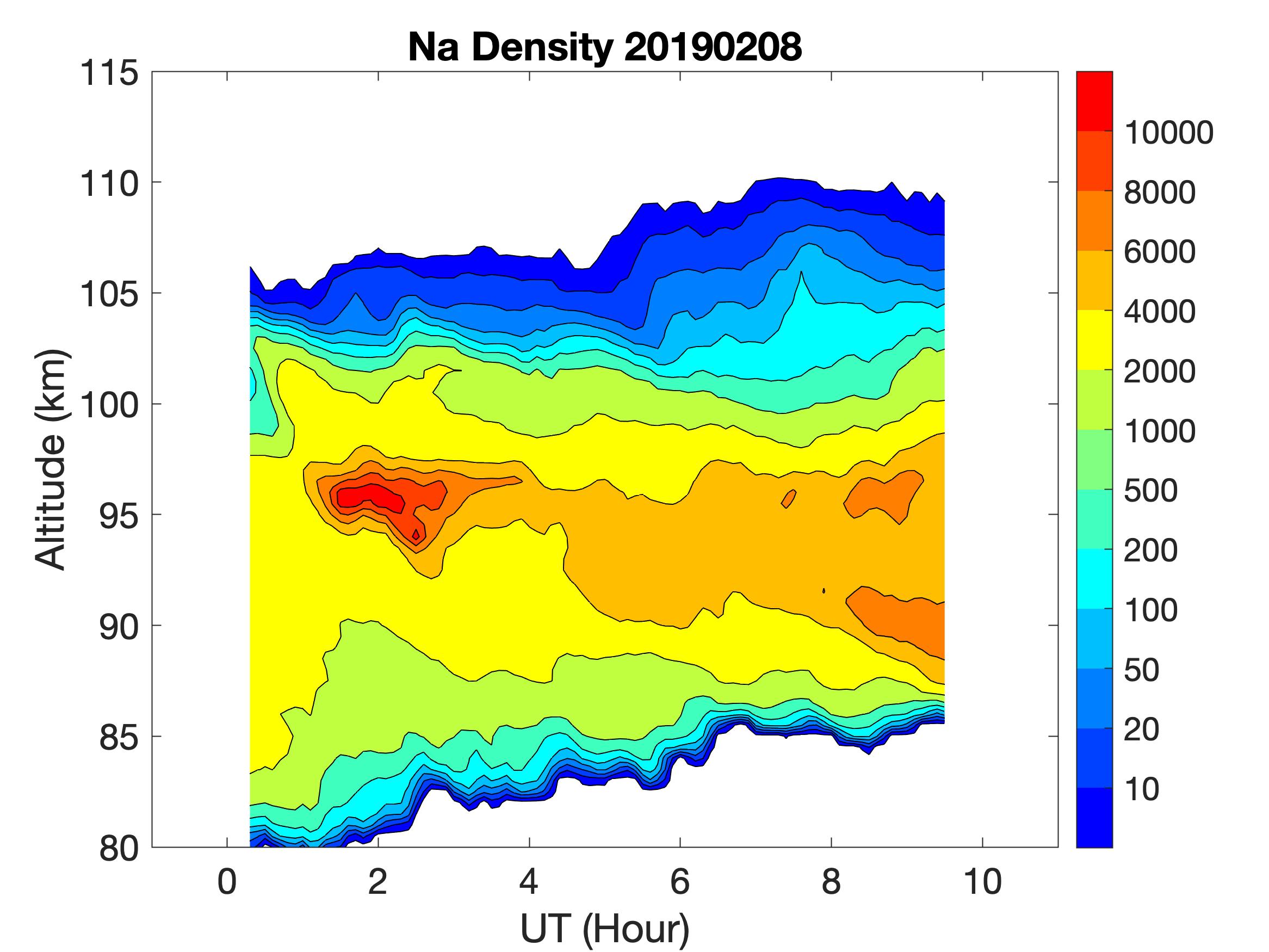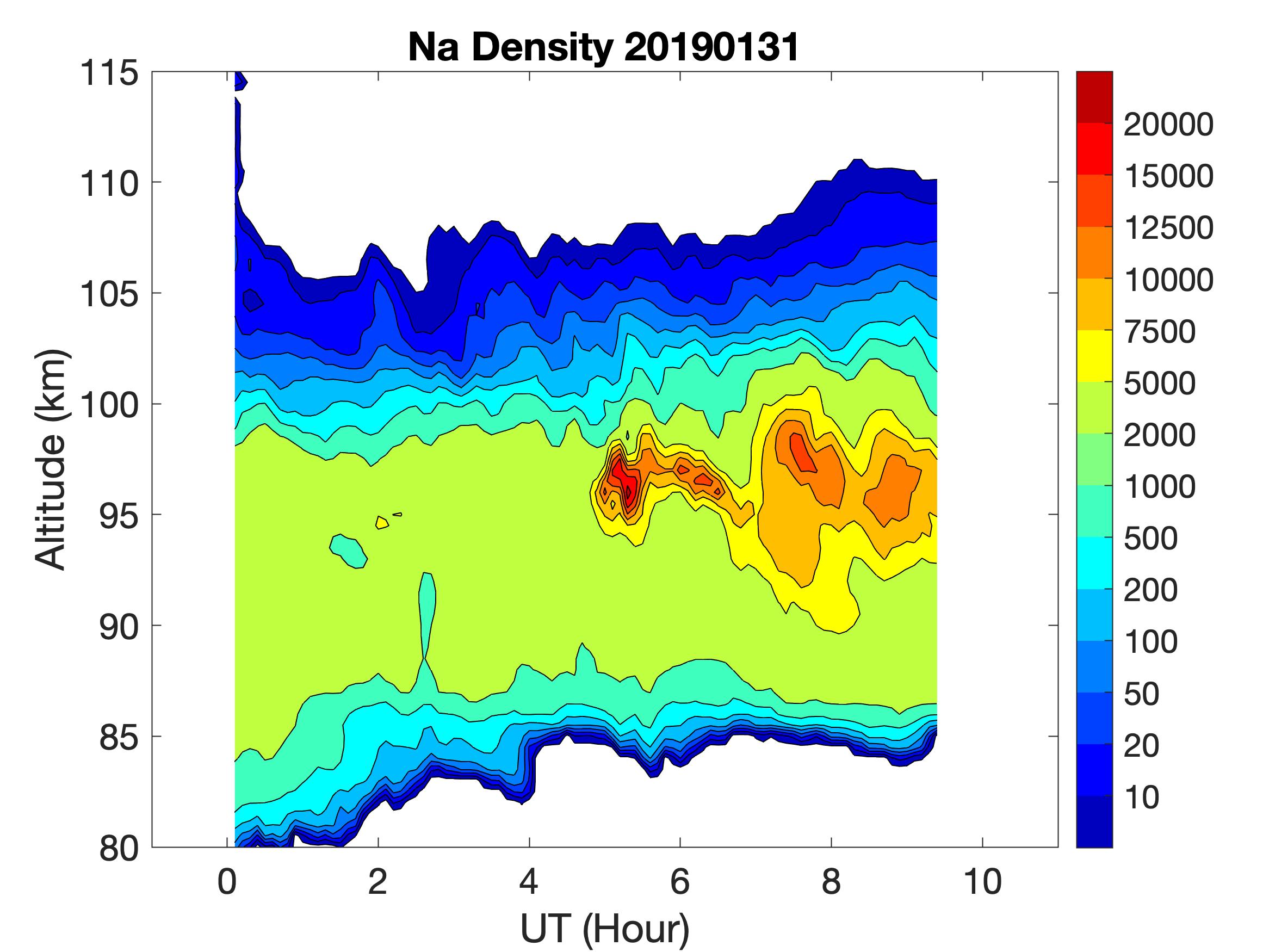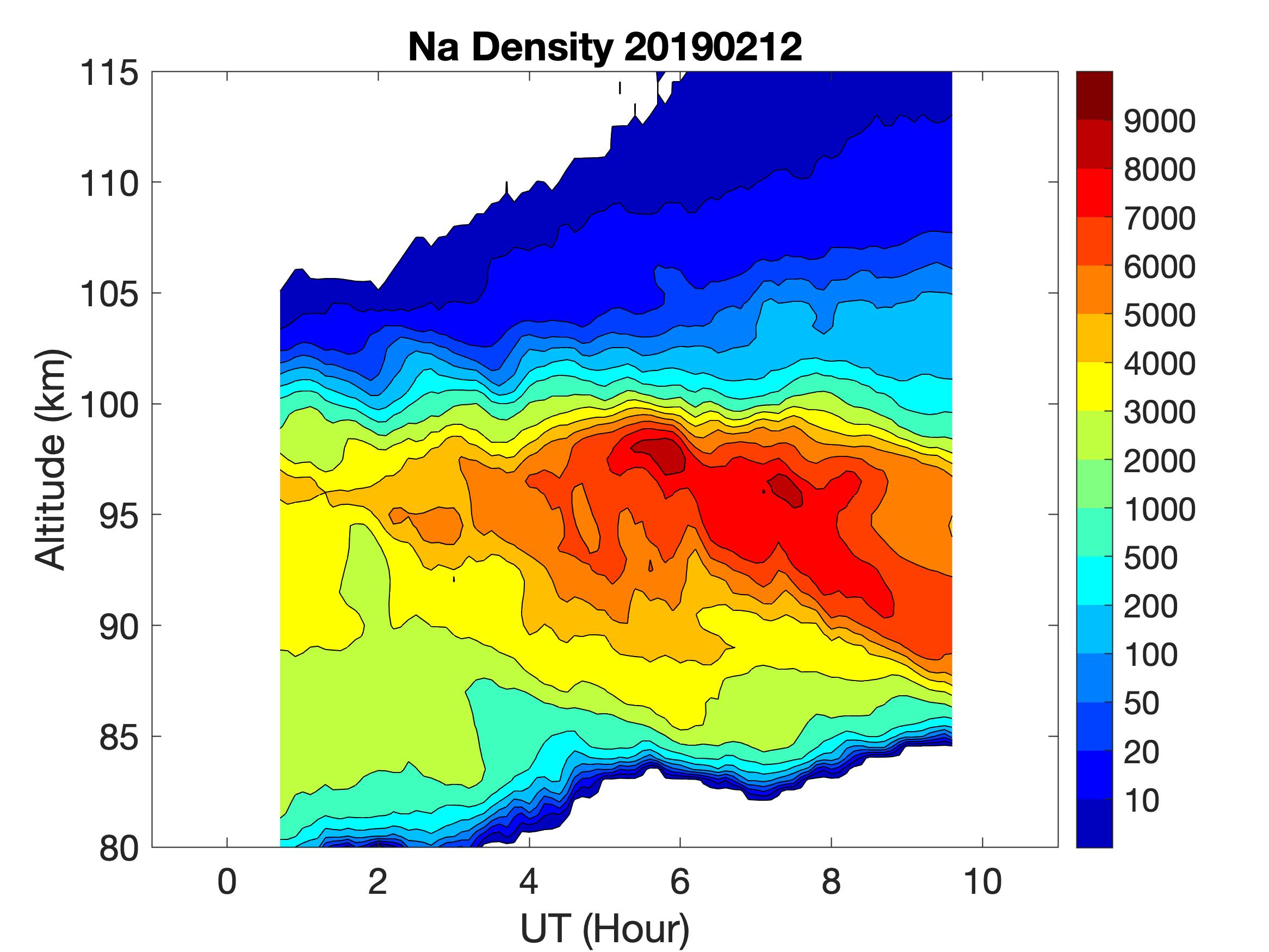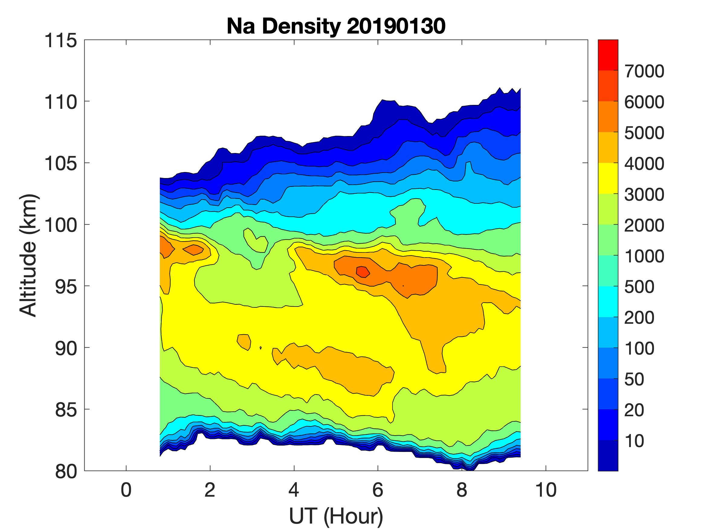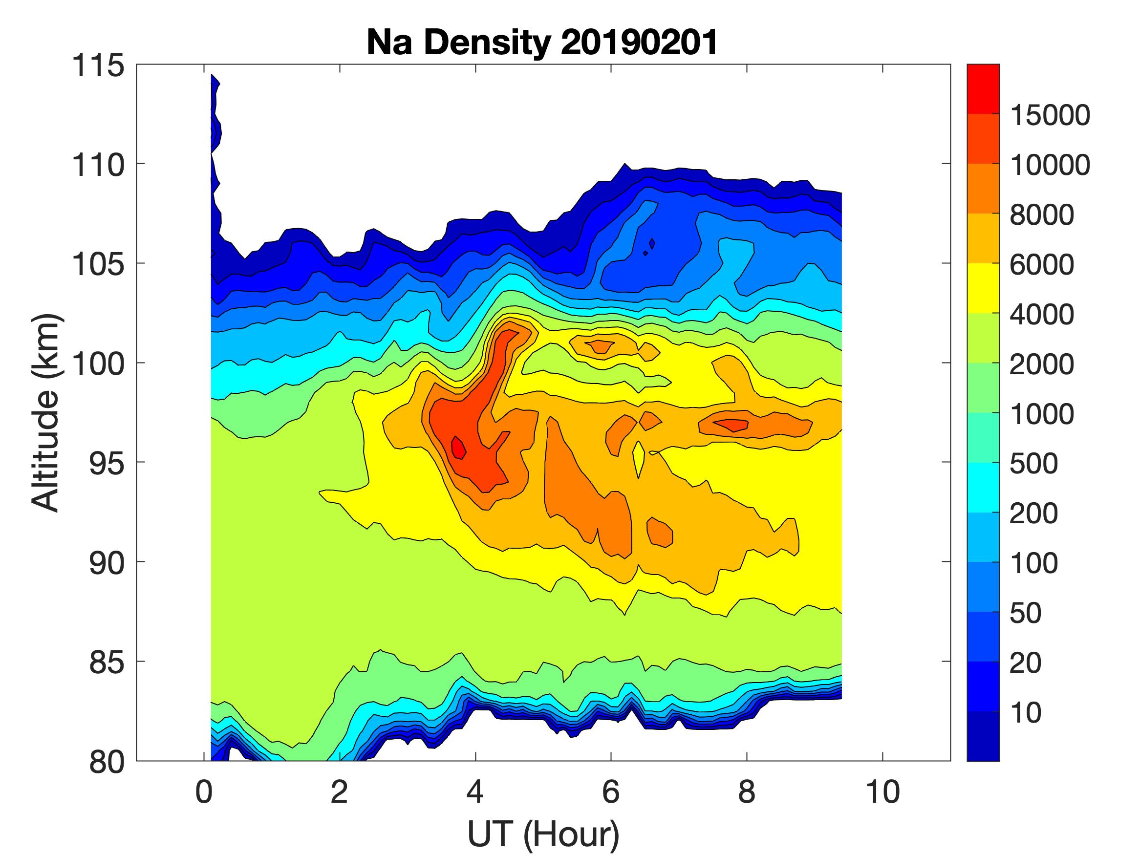 The lidar was operated in zenith mode on all nights. The integration time for processed data is 60 s. The smoothing window is 15 min and 1 km full width. Only Na density and mixing ratio are available because of a failed shutter.
